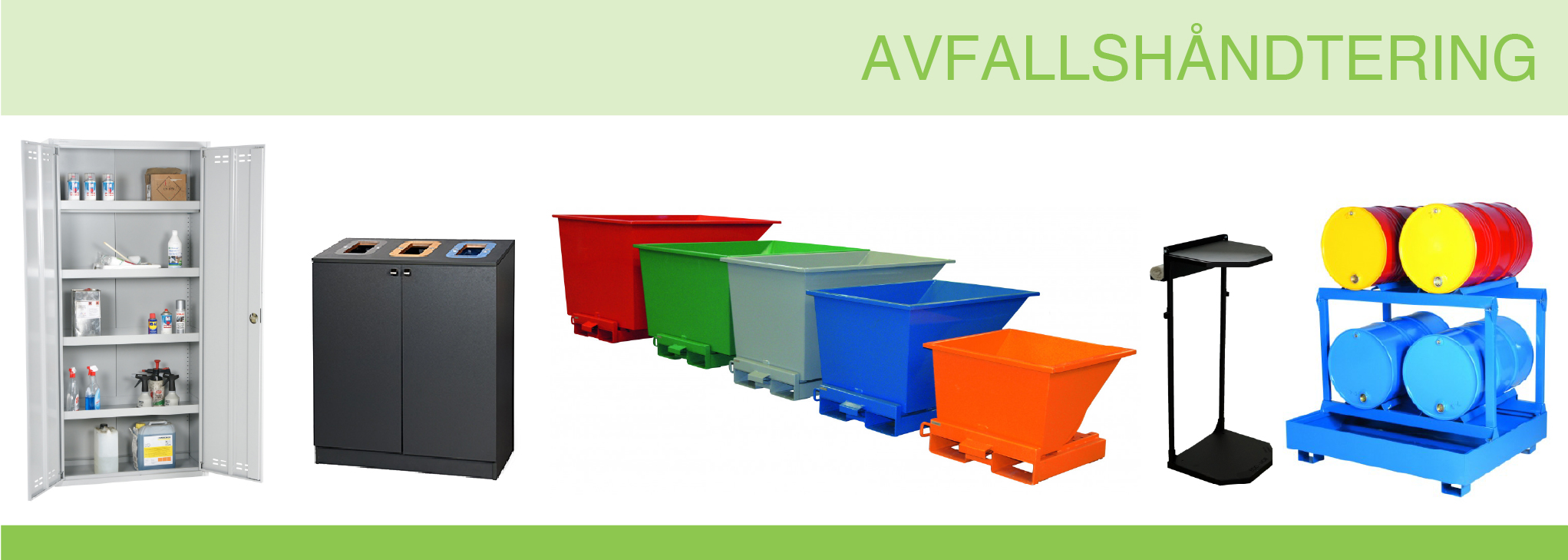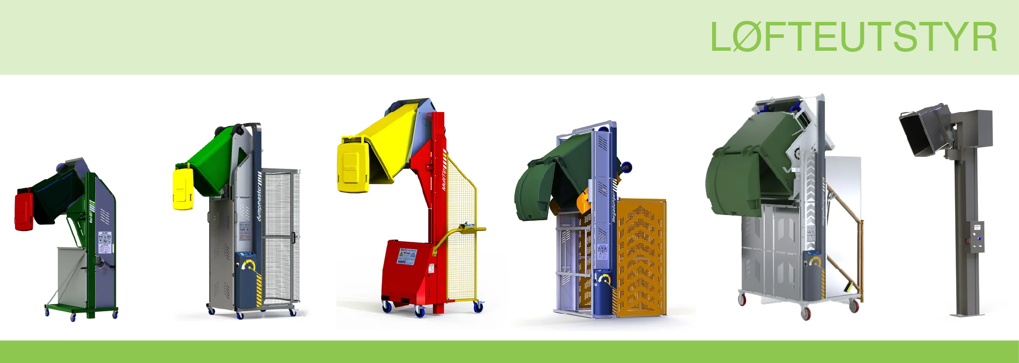 Tippcontainer 300 L i pulverlakkert stålkonstruksjon — robust og forsterket, tåler tippbelastning ≤ 1500 kg. Automatisk tømming via fjærbelastet plate, CE-merket, kan bestilles i ulike farger og med tilbehør.