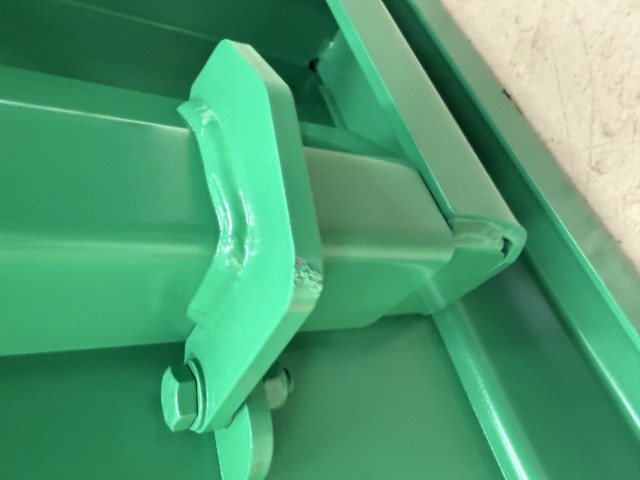 Tippcontainer 300 L i pulverlakkert stålkonstruksjon — robust og forsterket, tåler tippbelastning ≤ 1500 kg. Automatisk tømming via fjærbelastet plate, CE-merket, kan bestilles i ulike farger og med tilbehør.