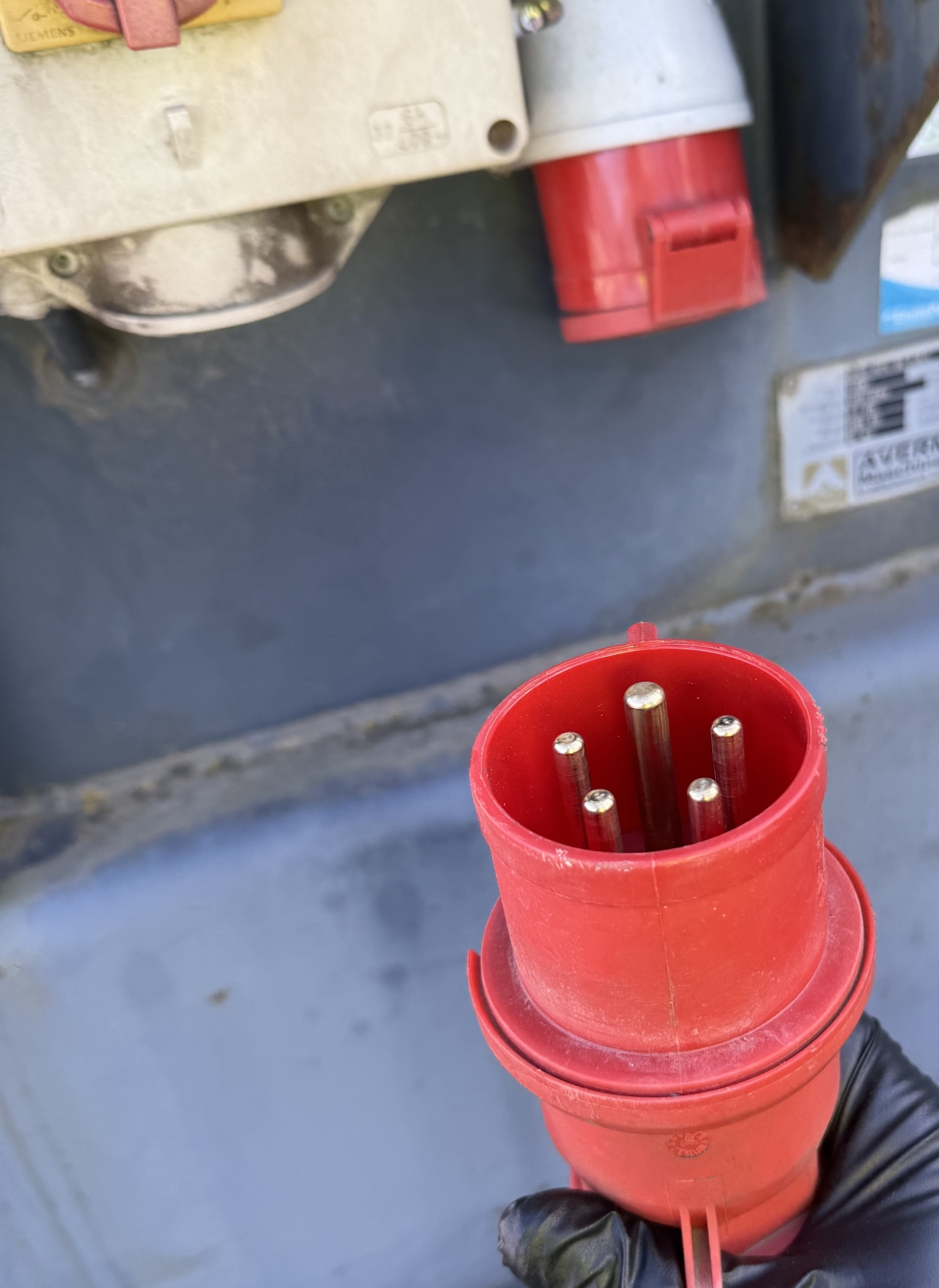 Tidligere i dag oppdaget vi en alvorlig og potensielt livstruende feil på en nylig ombygd komprimator. Under en rutinemessig sjekk fant vi at strømkabelen var montert med to hann-plugger – en løsning som aldri skal forekomme i henhold til regelverket, og som kan føre til dødsulykker.