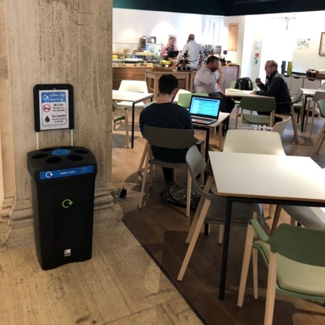 Spesialdesignet beholder for innsamling av kopper.