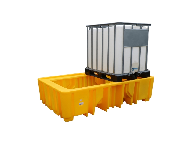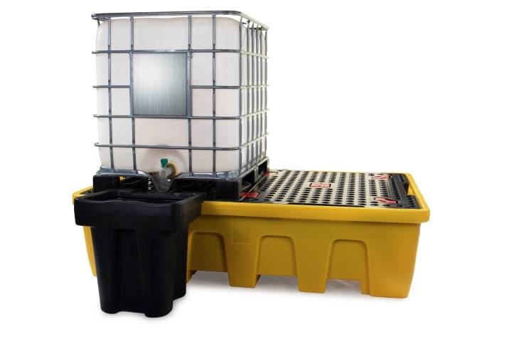 Et oppsamlingskar for én IBC med integrert dispenser.